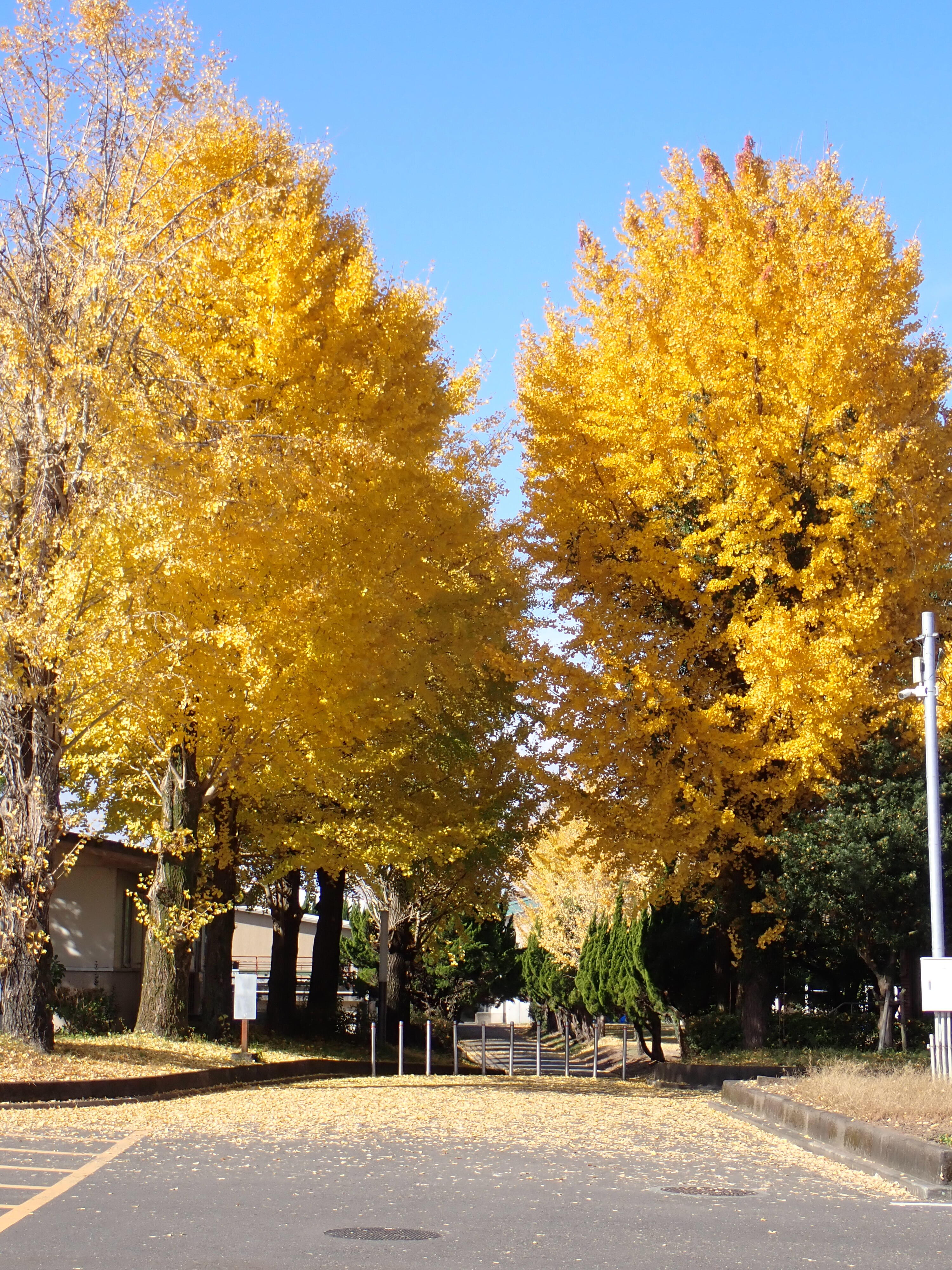 公開日時:2025年12月01日 銀杏並木が美しい師走となりました! 今年も、都城高専の敷地内にある銀杏並木が黄金色に染まり、秋の風景を楽しめる季節となりました(写真1)。高千穂寮に住む寮生は、朝夕の登下校時にこの美しい並木道を通り抜けます。風が吹くと、銀杏の葉が舞い落ち、まるで絵画のような光景が広がります。この季節ならではの景色を寮生たちは楽しんでいました。 写真1 本校の敷地内にある銀杏並木の様子 情報公開責任者: 寮務主事