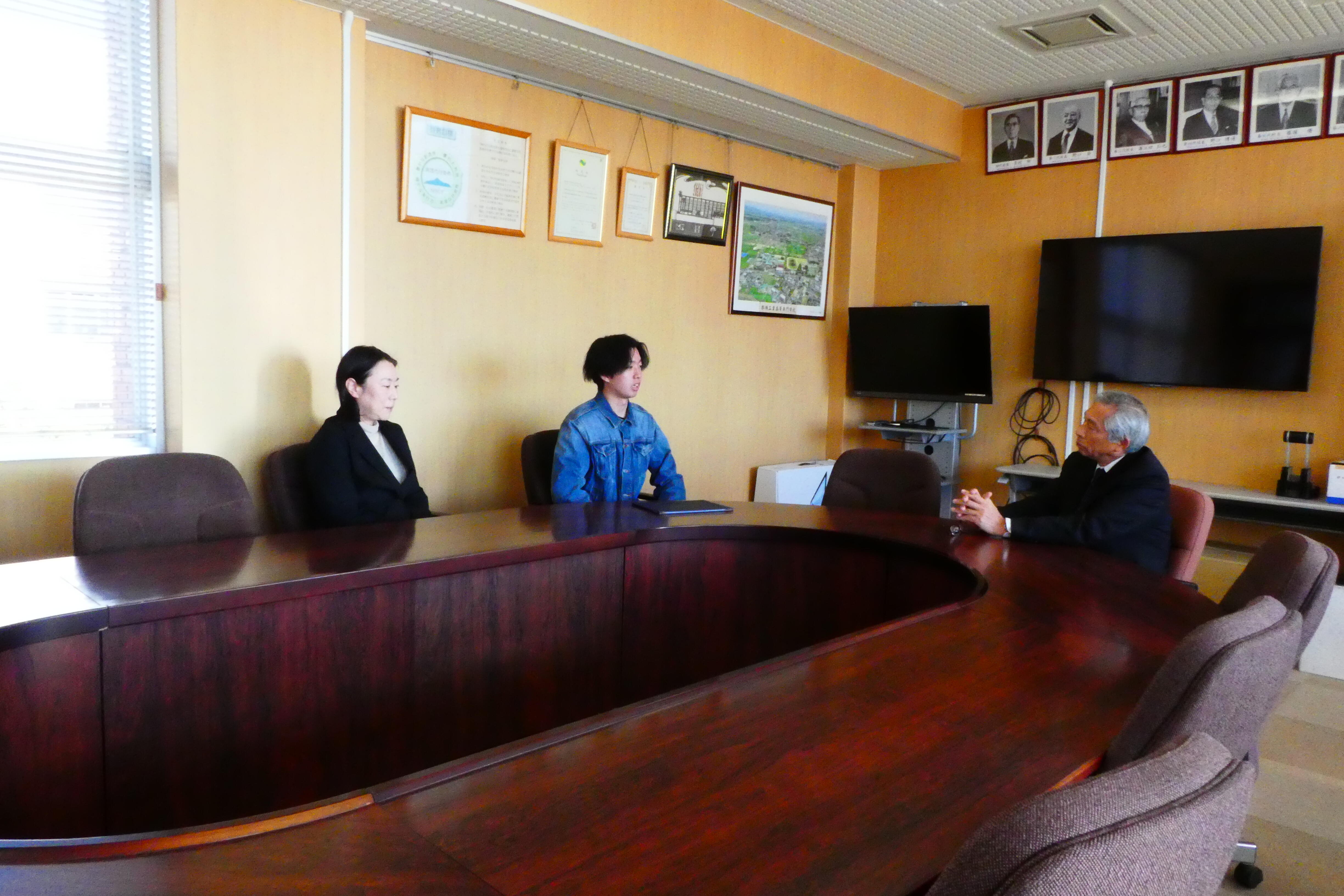 校長から発表した研究内容について質問され、緊張した様子で研究内容の詳細を説明しました。校長からは、今後も新たな分野も含めて研究を頑張るよう励ましの言葉をいただきました。