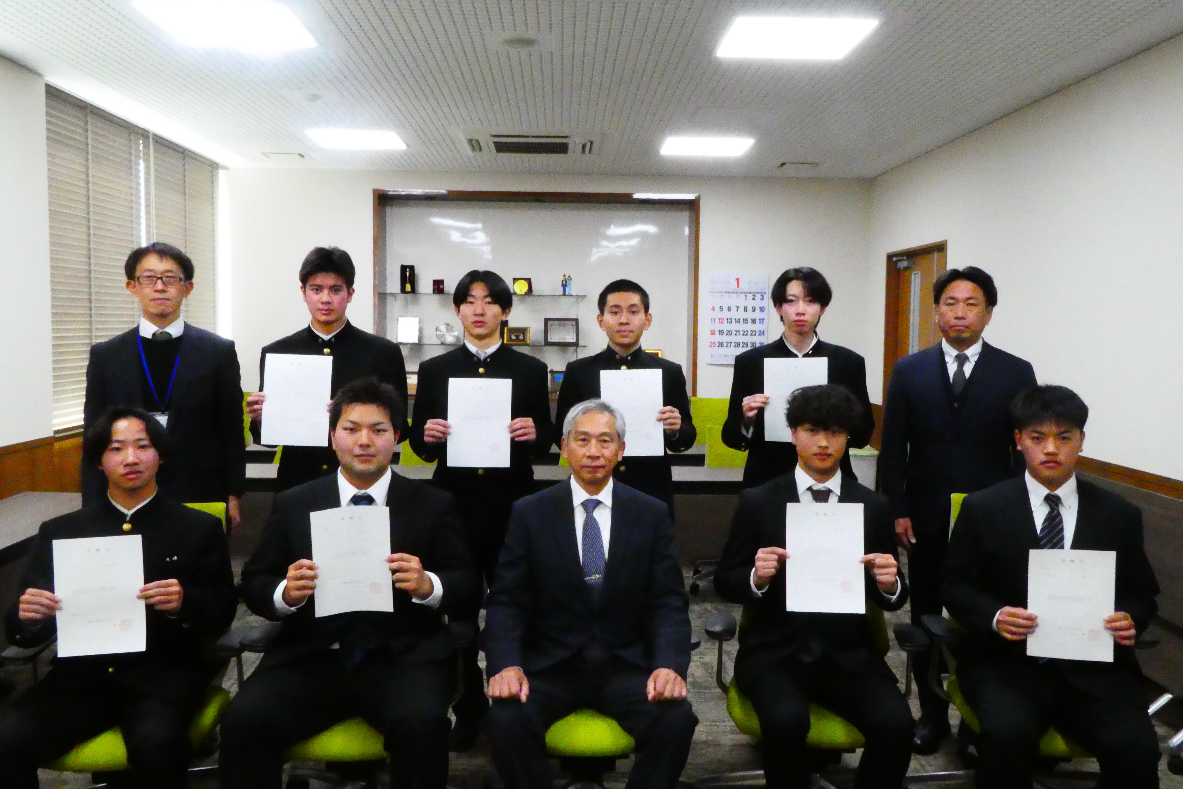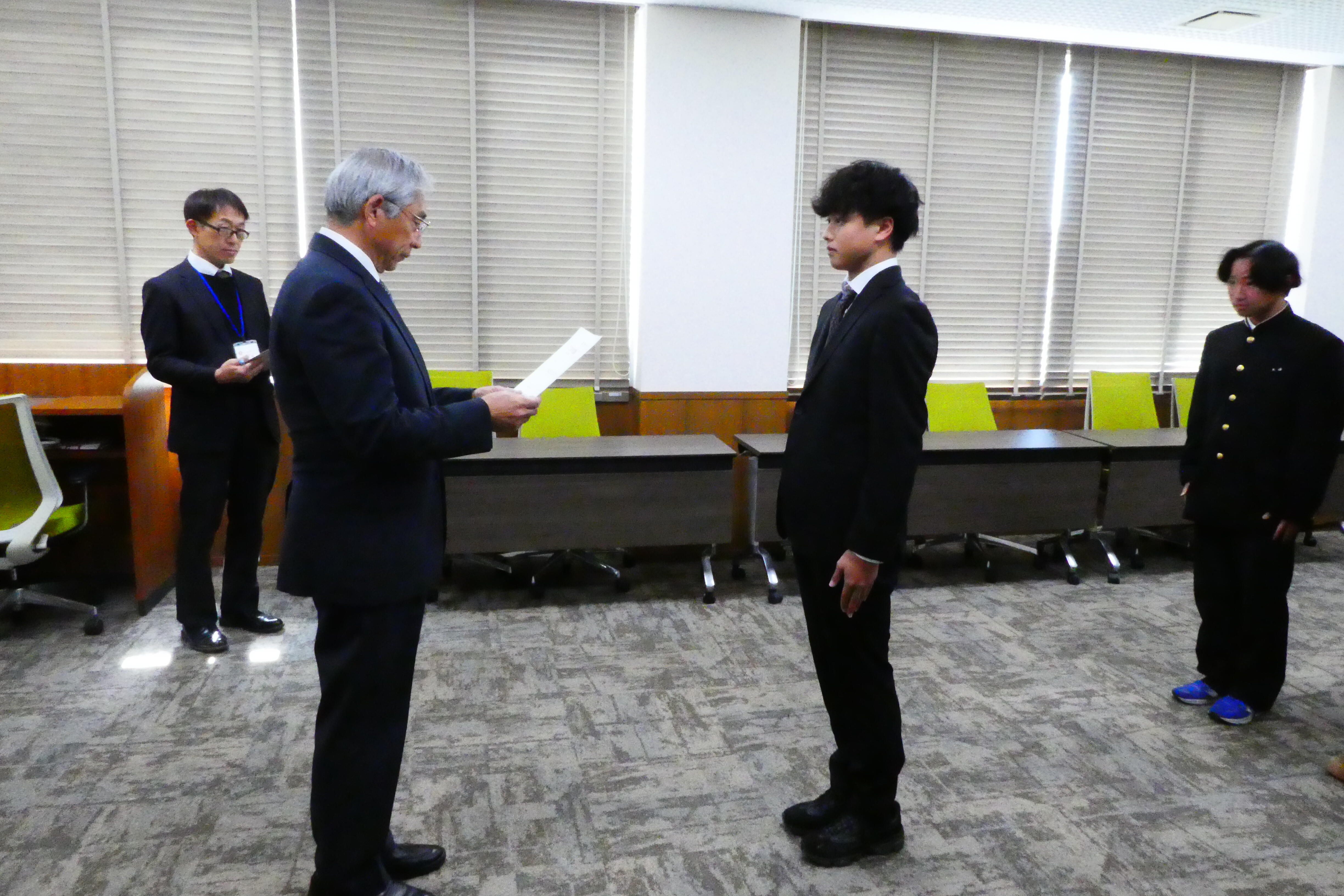 1月21日(水)、本校の管理棟会議室において、令和8年学生会役員委嘱式を行い、田村校長から学生会の役員に委嘱状が授与されました。