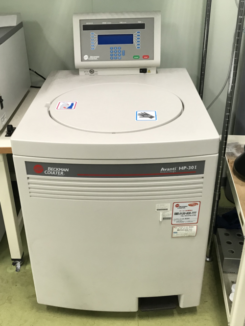 大容量のサンプルを遠心するのに用います。主に微生物の集菌や、蛋白質を回収するために用いています。