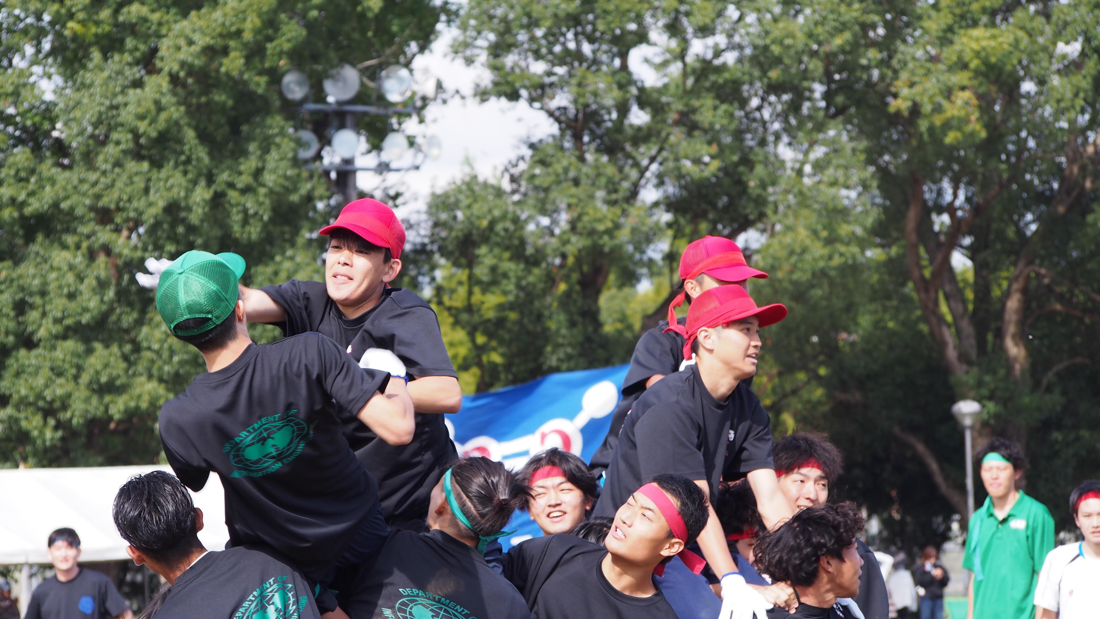 10月30日(木)、秋晴れの空の下、都城高専にて体育競技会が開催されました。会場には、機械工学科の学生達が製作した迫力ある団看板が設置され、競技会の雰囲気を盛り上げました(写真1)。競技会では、さまざまなプログラムが行われ、機械工学科の1年生から5年生までがそれぞれのプログラムに挑みました(写真2~6)。特に注目を集めた応援演武では、学生たちがこれまでの練習の成果を存分に発揮し、会場を大いに盛り上げました(写真7)。機械工学科の学生の頑張りや一致団結した応援により、見事優勝を果たし、さらに団看板 最優秀賞も受賞しました。